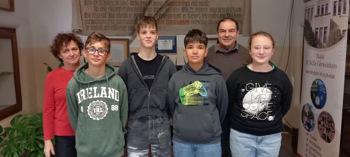 Ugyancsak díjazott, 5. helyen végzett a Czikollai Barnabás (7.B), Farkas Álmos Péter (7.B), Petres Kristóf (7.B) és Gazdag Bálint (7.A) tanulói csapat. Felkészítő tanáruk Steingártné Molnár Mária tanárnő.